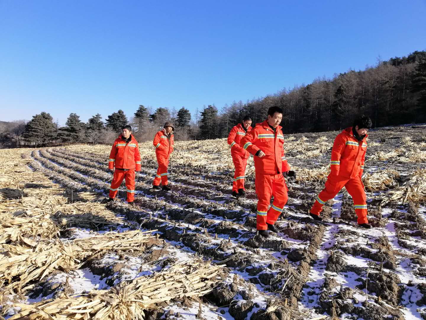 四平市国有林总场叶赫林场对林地边缘可燃物排查,杜绝火情发生
